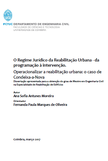 | Ana Moreira - Regime Jurídico Reabilitação Urbana | Produção Cientifica | Reabilitação Urbana | Prémio |